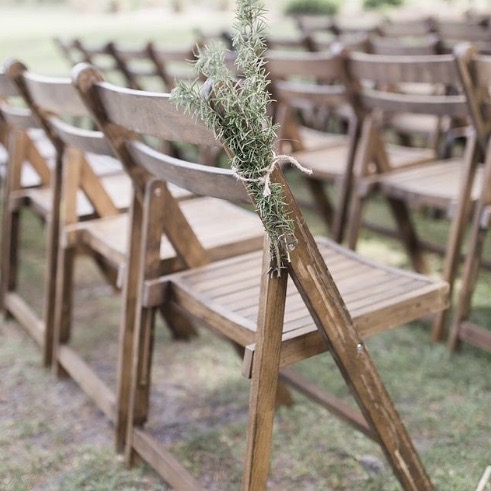 チャペルに並ぶ椅子にもローズマリーをコーディネート。香りでゲストをおもてなし。高揚感を生む作用もあるので、式がより感動的なものになるかも?