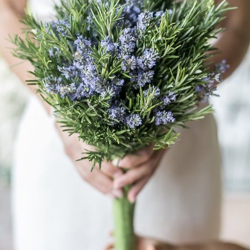 今回はハーブの中でも、冬から春にかけて開花時期を迎えるローズマリーを使ったアイディアをご紹介します。地中海に近いヨーロッパ各国では、ローズマリーは愛を象徴する植物として知られており、以前はローズマリーで新郎新婦を祝福したり、その幸せのおすそ分けとしてローズマリーの小枝がゲストのナフキンに置かれていたとか。花言葉も「永遠の愛」。まさにウエディングにぴったりの花材ですね。