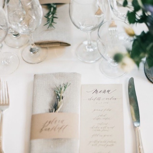 抗菌作用や抗ウイルスの効果があるローズマリーは、テーブルコーディネートにぴったり。幸せのおすそわけとしての想いも込めて。