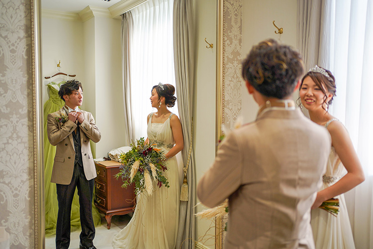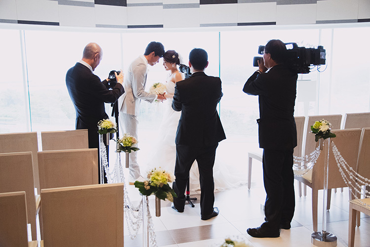 写真さまざまな式場やシチュエーションで多くの経験を積んだカメラマンが担当します。希望のカットやポーズ、仕上がりの雰囲気など、撮影イメージを事前にしっかりヒアリング。カメラマンの指名も無料で承ります。