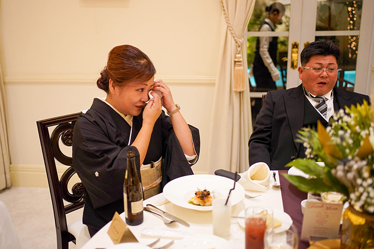 少人数結婚式のご会食にはコース料理の内容を贅沢に二段重に盛り付けた「お祝い膳」をご用意しております。サービス回数を減らすことで、スタッフとの接触時間を減らし、コース料理よりお食事時間を軽減することが出来、新しい生活様式に適したスタイルです。