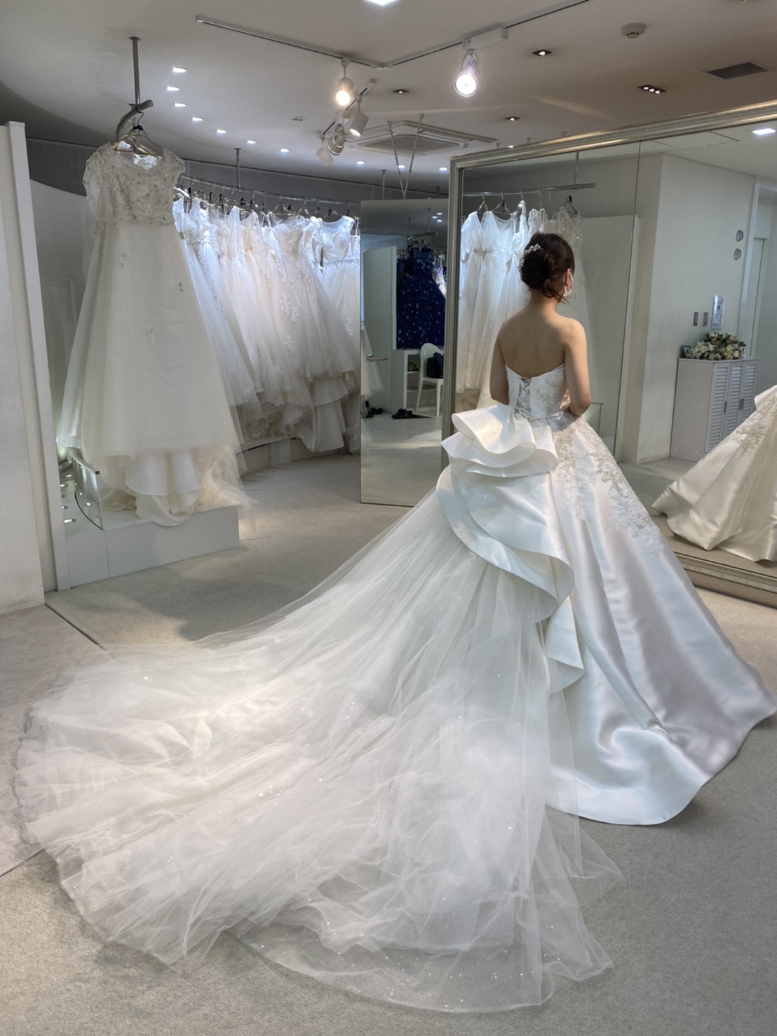 ドレスの種類がとても多く、着てみたいドレスを選ぶところからわくわくします。ドレスを着る際に小物もつけてくれたり髪も結んでくれるため、よりイメージも膨らみました。ウエディングドレスもカラードレスも、どちらともかわいいドレスが多いため選ぶのに迷ってしまいなかなか運命の1着を決められませんが試着する時間はとても楽しいです。